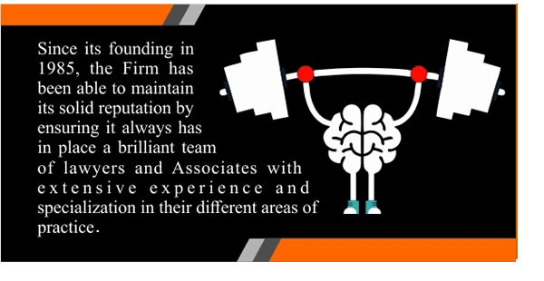 Also with the Firm are a number of Associate Counsel, all with varied competencies from foremost Nigerian and foreign Universities. They possess years of experience in their various areas of specialization, practice and expertise and constitute a truly formidable team of lawyers who are conversant with current laws and trends in the profession. They are in turn supported by a specialized support staff including Litigation Assistants, Law Clerks and ICT Administrators.
